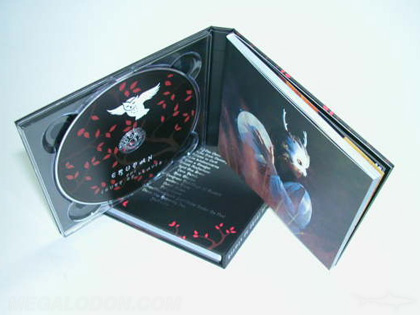 CD books or 5 inch size hardbound books are available with trays, hubs, glued on sleeves / pockets or swinging sleeves. All are made with a rigid chipboard core and wrapped with either a 4C paper wrap or a fabric or material wrap.